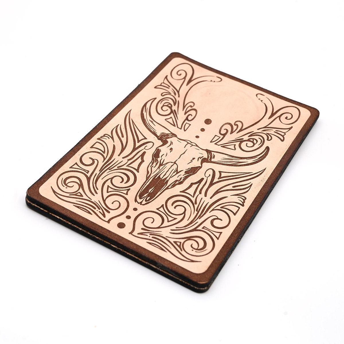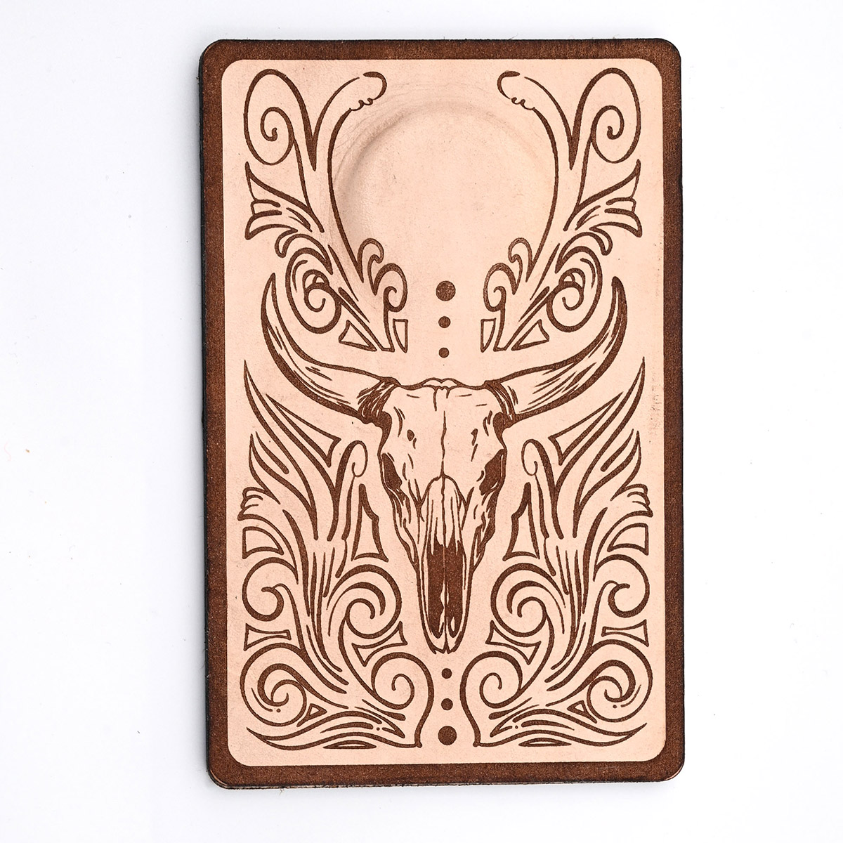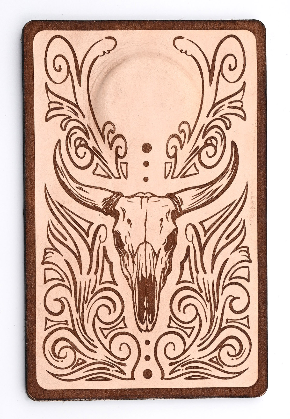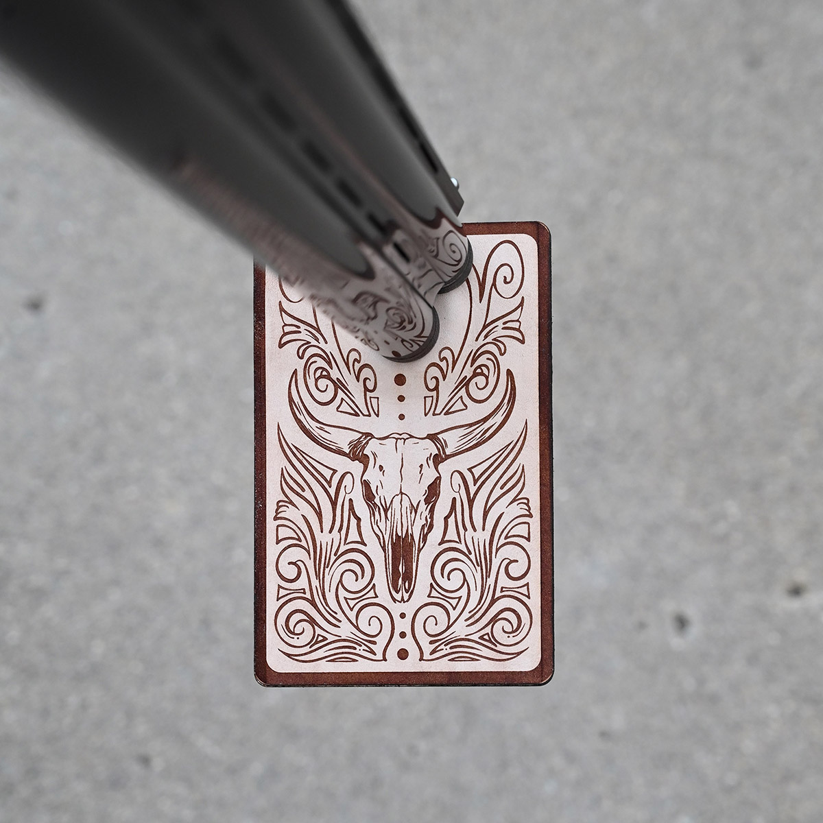 It’s hard to beat the durability of leather. It might lack a little of the padding of the foam rests for your shotgun, but the leather wears much more slowly. These rests are made of two pieces of leather with a very strong magnet sandwiched between them at the top. It’s clear where the magnet is – there’s a bulge in the pad. The leather is laser engraved, then the two pieces are adhered together with adhesive. No two pieces of leather are the same and there will be small variations between the pieces. Designs may vary slightly as they evolve. The design is original, and as always – custom pieces are available. This is a great addition to everyone’s shooting bag, it improves safety and reduces fatigue when you are standing on the line or just waiting to shoot. Muzzle rests are a must in high school shooting leagues where resting on a toe is illegal. Great for trap, skeet, five stand, sporting clays and all other shooting sports. The leather is engraved and hand assembled by me, right here in the good ol’ USA!